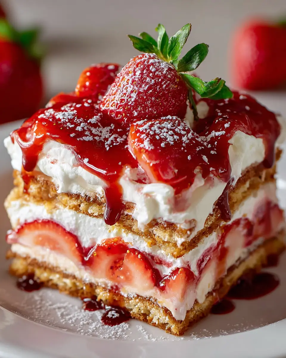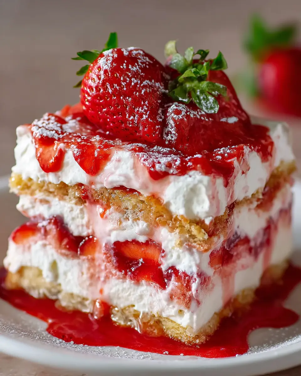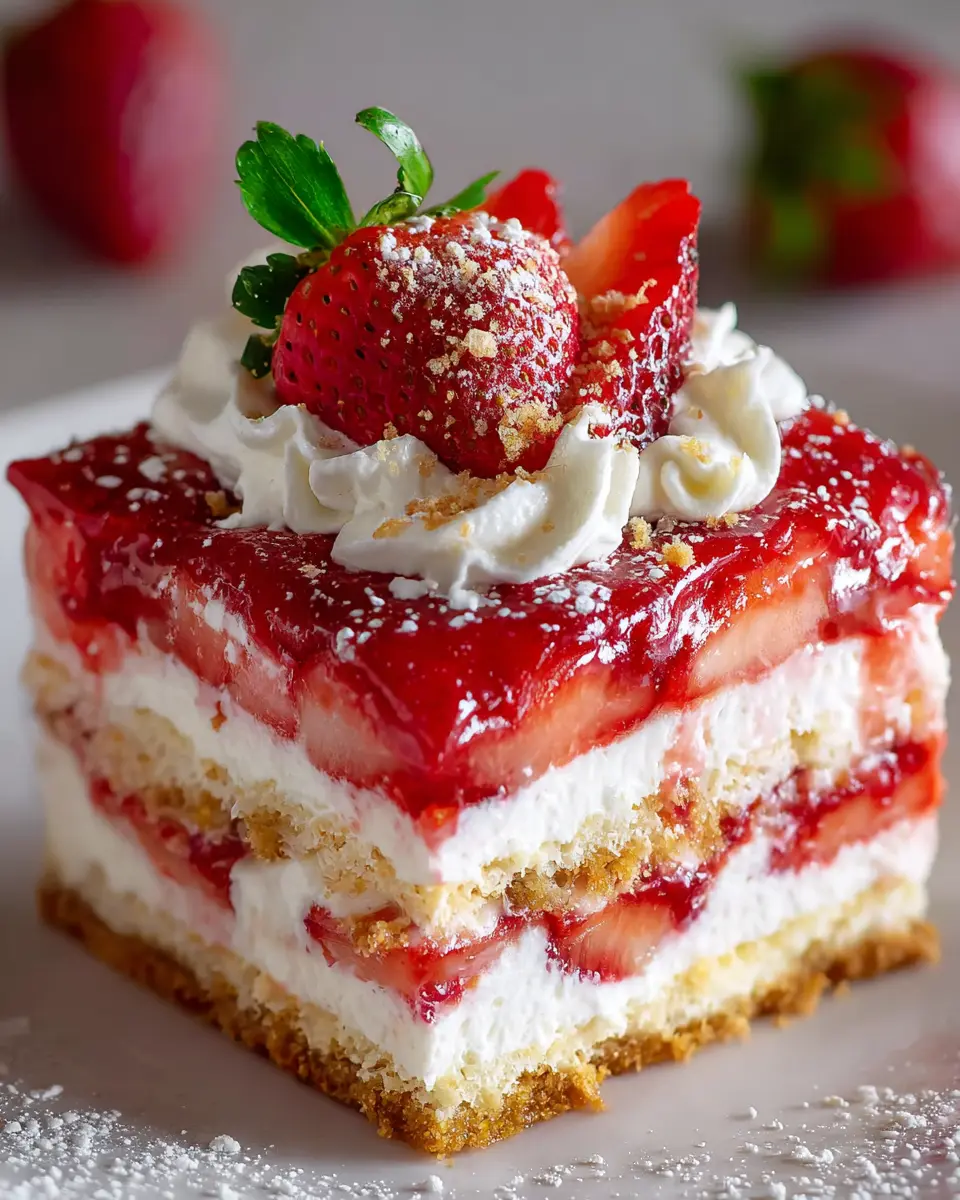 Keywords: Strawberry Lasagna, No-Bake Dessert, 4-Layer Dessert