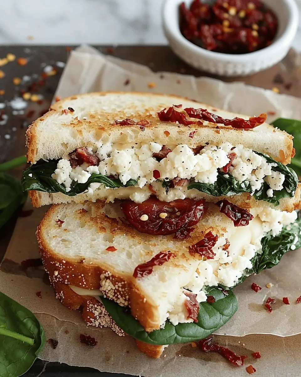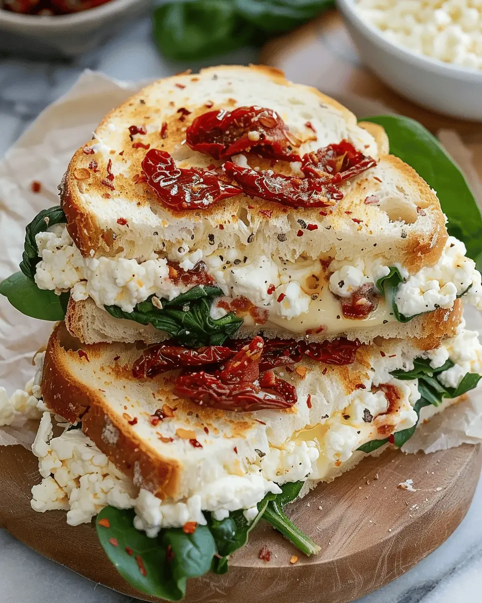 Tailor to Taste: Feel free to get creative! Add herbs like basil or oregano, or a squeeze of lemon juice for brightness. Personalizing this blend is what makes your sun-dried tomato spinach ricotta sandwich uniquely yours.