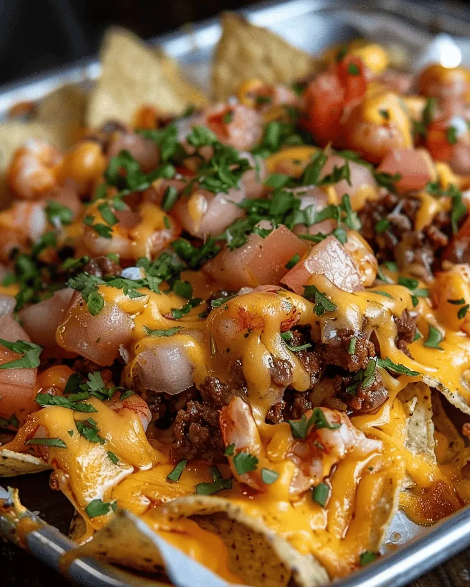This rendition pairs beautifully with a side of coleslaw for that refreshing crunch and sweetness. With the explosion of flavors, you might want to keep napkins handy, as these nachos can get delightfully messy!